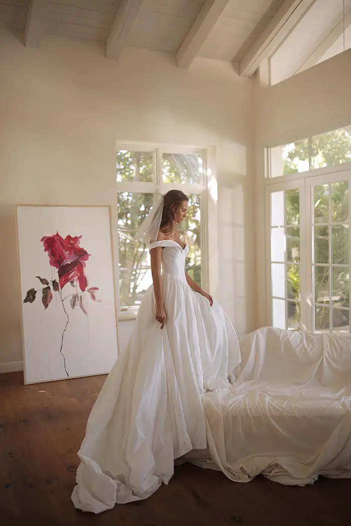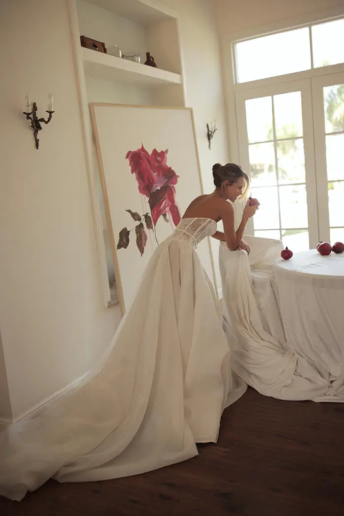The “Petals” collection is designed for the bride who moves gracefully through life, valuing quality over quantity. She is a woman who understands the power of understated elegance and cherishes moments of genuine connection. This bride is not swayed by fleeting trends but seeks a gown that reflects her authentic self. She loves elegance in its purest form and is drawn to designs that resonate with her values. For her, “Petals” is not just a bridal collection; it’s a reflection of her essence.